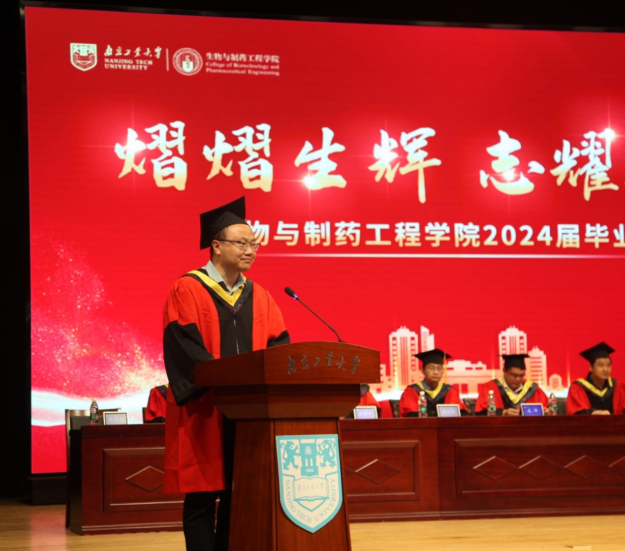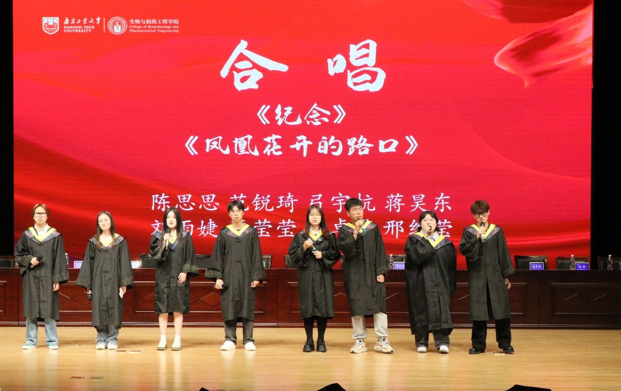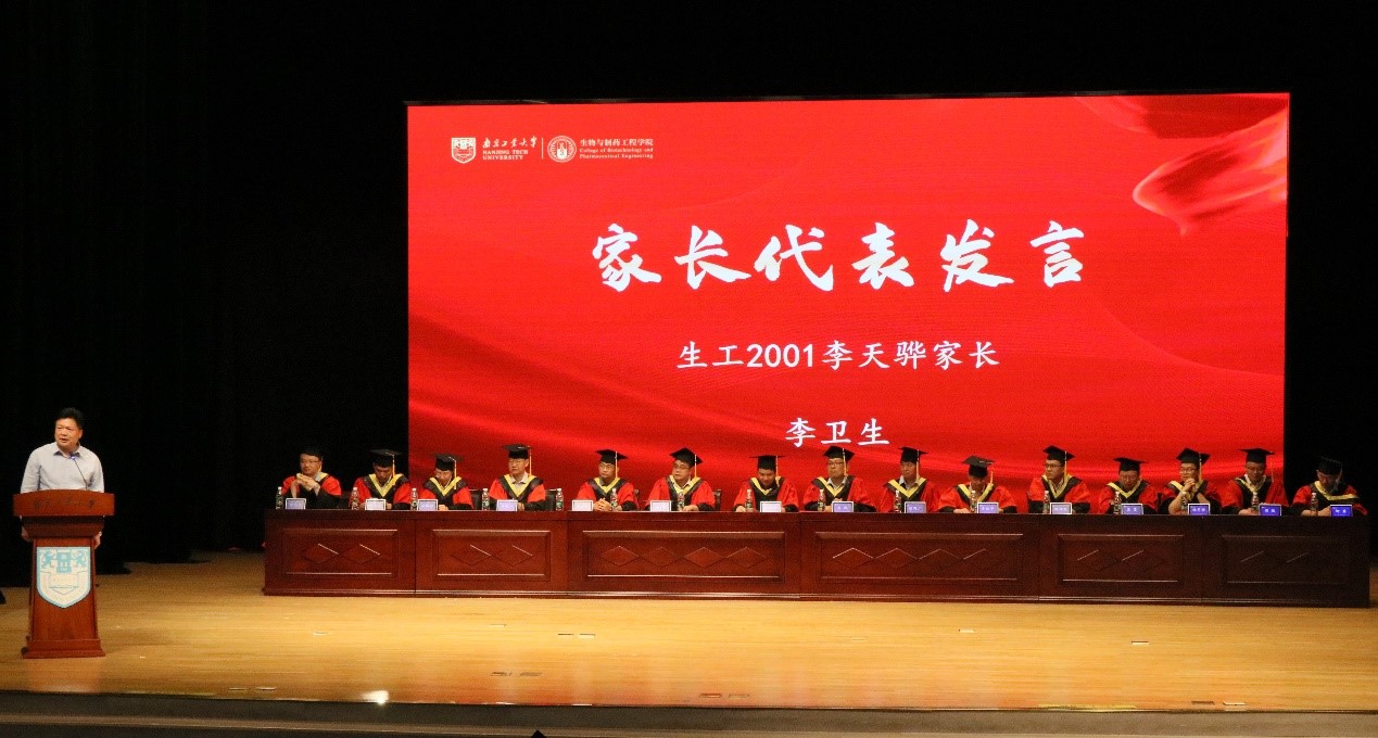 在公司领导老师家长对毕业生殷切祝福视频后,毕业典礼正式开始,全体起立共唱国歌,寓意毕业生始终与祖国同心同梦、与时代同向同行。副经理贾红华和庄伟分别宣读公司优秀本科毕业生和优秀毕业研究生名单,主席台领导和导师向获奖同学们颁发荣誉证书,并向各班级员工联络员颁发聘书。本科优秀毕业生代表,2024年省级优秀毕业生,制药2005班郭志涛同学发言,呼吁广大毕业生共同赴山海,奋进启新程。优秀毕业研究生代表,2022年江苏省优秀共青团员,生研2105班陈嘉伟同学分享了他投身于云南普洱的支教经历,号召广大毕业生情系山海,扎根祖国大地,在群山间播撒爱与希望。员工联络员代表,生工2002班徐湉同学承诺做好作为员工联络员的工作,担当起相应的责任,呼吁广大毕业生在毕业后为母校高质量发展继续共同努力。家长代表生工2001班李天骅家长感谢公司和公司对学子们关心指导,并叮嘱毕业生们要牢记母校教诲,感念培育之情,自信满满走好人生路。