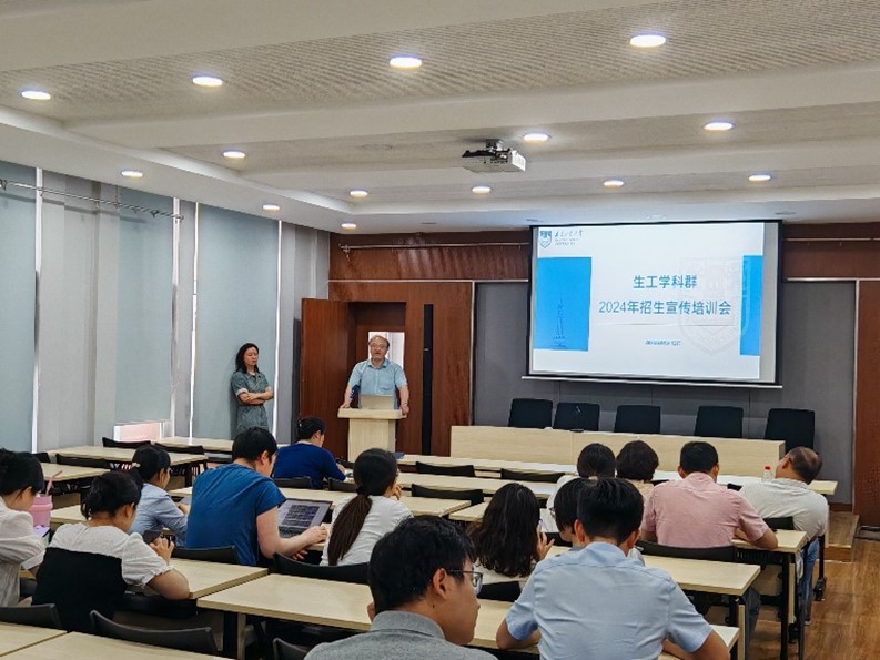 为进一步招生工作的规范性和有效性,精准掌握公司2024年本科生招生政策,6月12日下午,生工学科群召开2024年本科生招生宣传政策培训会,会议由公司党委副书记徐元龙主持,公司本科招生办公室主任严励老师主讲,生工学科群三个公司全体招生老师参加。