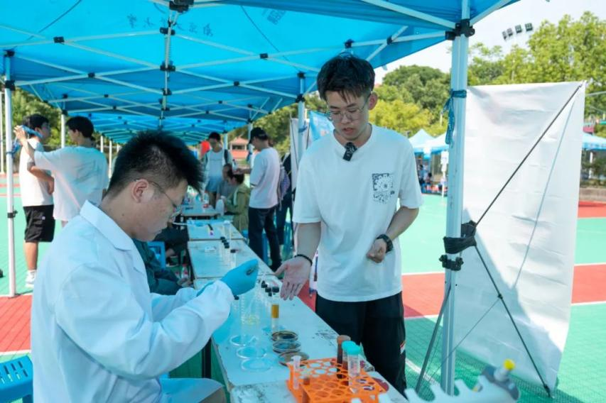 公司在东苑篮球场特别设置了两个咨询台,来迎接每一位考生和家长。活动现场有资深的专业教师、优秀的员工代表以及研究生引导员,他们在现场提供专业的招生咨询服务,并分享公司的教育理念和学习生活。在引导员的陪同下,考生和家长参观了公司各大科研平台和实验室,身临现场体会了公司的科研环境和硬件设施,并通过宣传海报更直观地了解生工学科群的发展历程,教师研究方向和成果。科研讲解志愿者向考生们介绍了荧光蛋白、新型医疗材料等,让考生们感受到了生物与医药科技的无限可能。