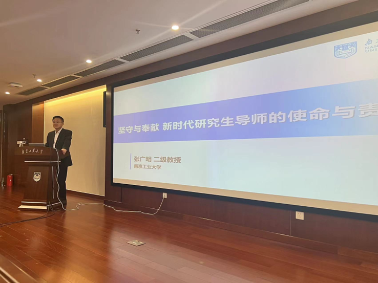 张广明教授围绕“坚守与奉献·新时代研究生导师的使命与担当”主题展开,他介绍了新时代研究生教育的趋势与要求,分析了导师在人才培养过程中的责任和作用,并就如何成为一名优秀的研究生导师提出了三点希望:一是要立德树人,积极承担新使命,提升育人能力;二是要科研育人,发挥引领作用,提升创新能力;三是要以文化人,有人文关怀精神,提升仁爱能力。
