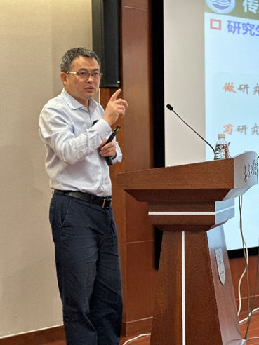 刘立明教授作了题为“做好博硕士生成长引路人的实践与反思”的报告,强调了导师在员工成长过程中的重要性,从“守正创新,严谨治学”以及“传道授业、甘为人梯”两个方面,以身作则展现如何正确引导员工。刘立明教授结合习近平总书记系列重要讲话,提出导师应深刻把握时代发展大势,拓宽学术视野、坚定研究方向、聚焦科学问题、突出产业应用;在人才培养方面,引导研究生建立完善的知识体系、掌握科学的研究方法、提高创新思维能力,引导员工“做研究、写研究、讲研究”,同时也要关心关爱员工,营造以人为本的学术氛围,做好员工的良师益友。