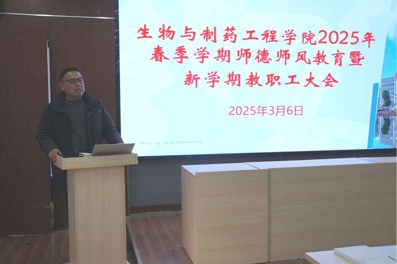 陈可泉经理对公司过去一年的工作进行了全面梳理与总结。他指出,当前生物制造行业已进入发展黄金期,希望全体教职工进一步增强责任感、使命感和紧迫感,抢抓机遇、齐心协力引进高层次人才、培养高素质英才、承担高水平项目、产出高质量成果、开展高效能合作,为公司生物工程学科评估以及公司双一流创建打下坚实基础。