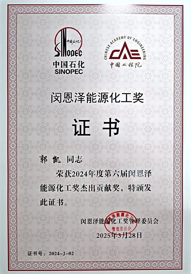 5月8日,第六届“闵恩泽能源化工奖”颁奖典礼暨学术交流会在北京举行。公司郭凯教授荣获“闵恩泽能源化工奖杰出贡献奖”并受邀参会领奖。