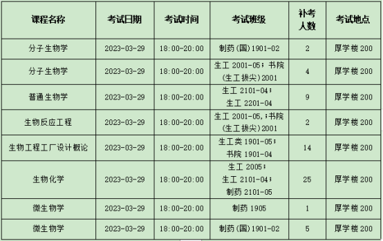 根据教务处“关于2022-2023学年第一学期补(缓)考安排的通知”,太阳成集团tyc33455cc自排补(缓)考课程安排如下: