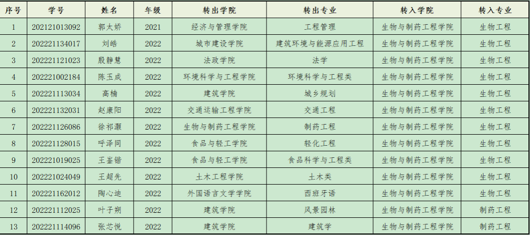 根据《关于开展2023年本科生转专业工作的通知》要求,经员工报名、教务处初审、公司本科生转专业工作小组面试考核,现将2023年太阳成集团tyc33455cc本科生转专业拟接收名单予以公示。