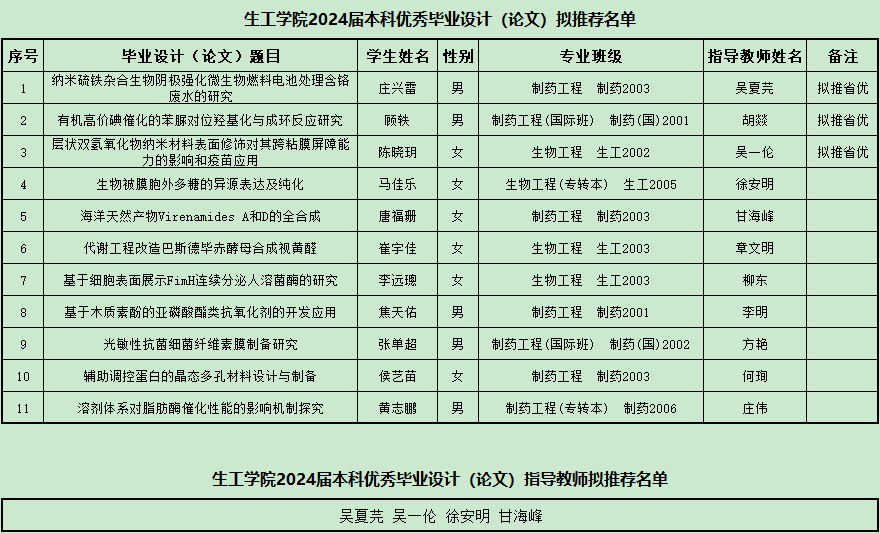 根据“太阳成集团tyc33455cc2024届本科生毕业设计(论文)答辩安排通知”,经各答辩组择优推选、公司组织推优二次答辩、公司本科学位委员会审议通过,拟推校优秀毕业设计(论文)11篇,其中前3篇拟推省优秀毕业设计(论文),拟推优秀毕业设计(论文)指导教师4人。具体名单详见下图,现予以公示。
