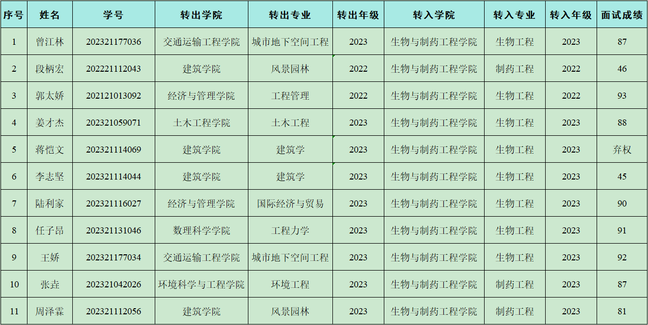 根据《关于开展2024年本科生转专业工作的通知》要求,经员工报名、教务处初审、公司本科生转专业工作小组面试考核,现将2024年太阳成集团tyc33455cc本科生面试成绩予以公示。