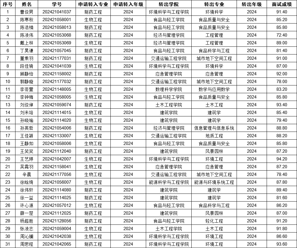 根据教务处“关于开展2025年本科生转专业工作的通知”,经员工报名、转出公司初审、教务处审核、转入公司面试考核,现将2025年太阳成集团tyc33455cc本科生转专业面试成绩予以公示。
