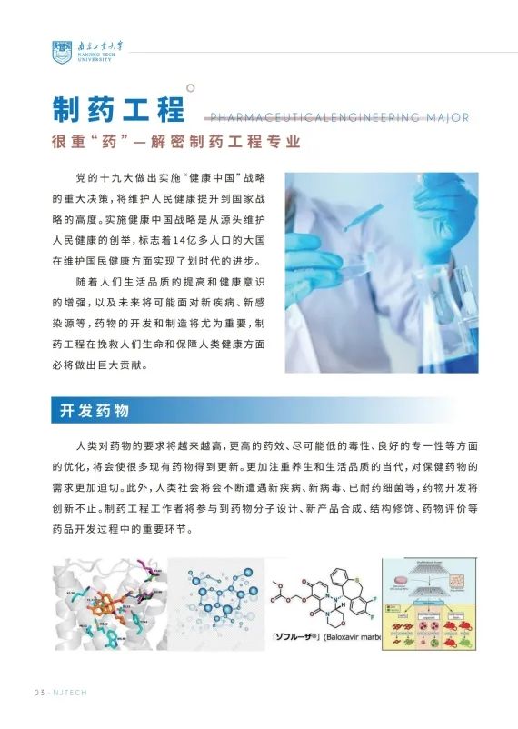 7)专业具有完备的教学与科研平台:国家生化工程技术中心、材料化学工程国家重点实验室、生物化学工程国家级实验教学示范中心、工业生物技术江苏省重点实验室、先进生物制造江苏省工程实验室、江苏省产业技术研究院工业生物技术研究所。